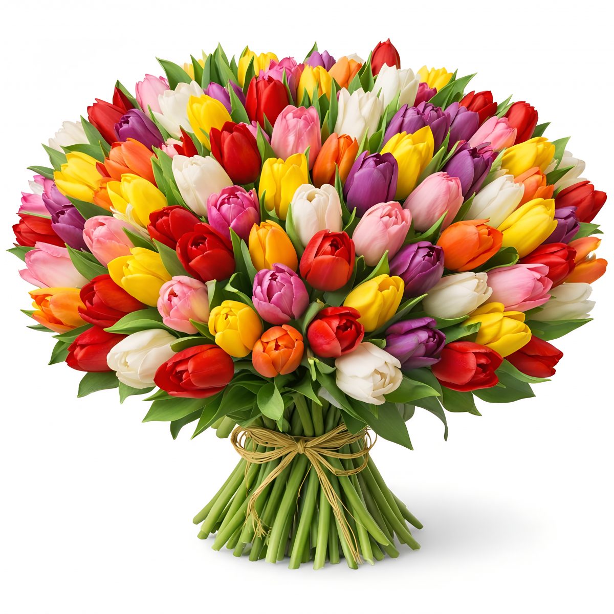 Акция! Тюльпаны 101 шт. — это подлинное зрелище для глаз, насыщенное яркими и насыщенными цветами, которые формируют атмосферу тепла и радости. Насыщенные цвета и разные текстуры формируют впечатляющий визуальный ансамбль, который привлекает внимание и вызывает восхищение.