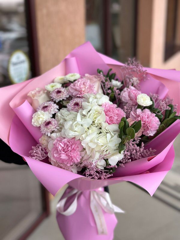 | Состав: | Герберы, Гортензии, Каллы, Пионы |