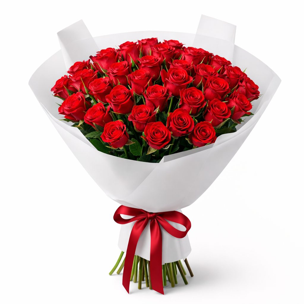 Роскошные красные розы Эквадор создают атмосферу страсти и элегантности. Букет оформлен в матовую пленку и перевязан атласной лентой глубокого бордового цвета. Возможна упаковка в крафт-бумагу или декоративную сетку. Прекрасный подарок для любимой на годовщину или День святого Валентина.