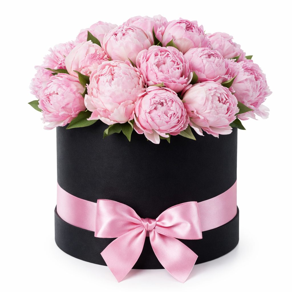 Розовые пионы создают атмосферу нежности и романтики. Они аккуратно размещены в элегантной шляпной коробке, украшенной атласной лентой нежно-розового цвета. В качестве альтернативы можно выбрать бархатную или дизайнерскую коробку. Прекрасный подарок для любимой на день рождения или годовщину.